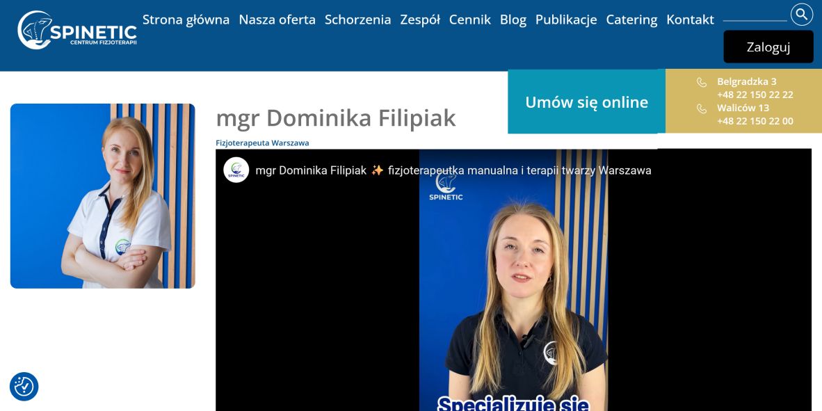 Jestem magistrem fizjoterapii i specjalizuję się w terapii manualnej, rehabilitacji ortopedycznej oraz pracy z pacjentami po urazach i operacjach. Pomagam